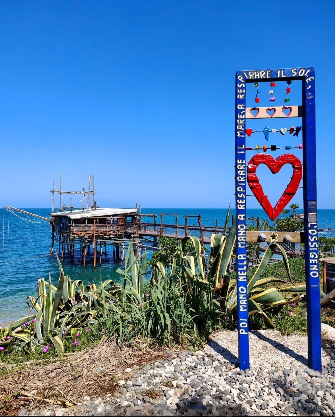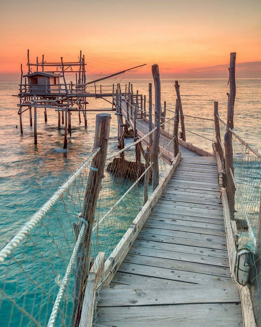 Ici, le regard se perd entre eaux turquoise, falaises dorées et anciennes machines de pêche suspendues sur pilotis — les célèbres trabocchi, symboles vivants de la culture maritime abruzzese.