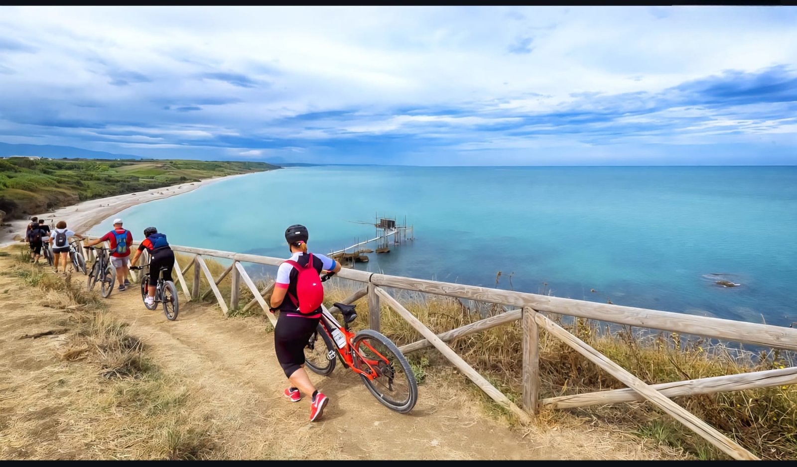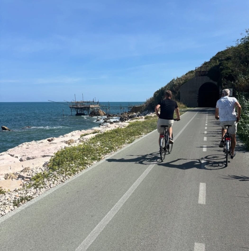 Depuis le pittoresque village de Rocca San Giovanni, la balade chemine en douceur le long du “Sentiero della Costa dei Trabocchi”, entre mer et oliveraies sur un vélo électrique.