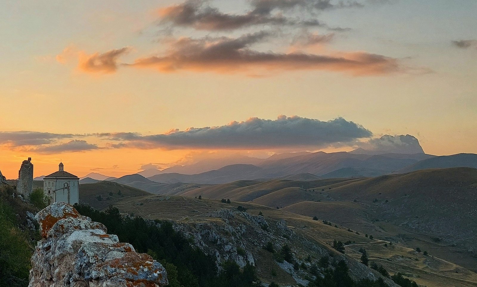 Là, entre ciel et montagnes, se dévoile l’un des plus beaux points de vue des Abruzzes : un décor de film et un lieu chargé d’histoire, où le temps semble suspendu.
